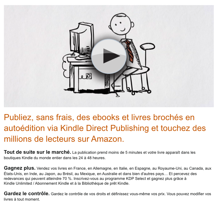 Amazon s'occupant de gérér pour vous l'impression, la logistique (livraison) mais aussi les ventes de votre livre.