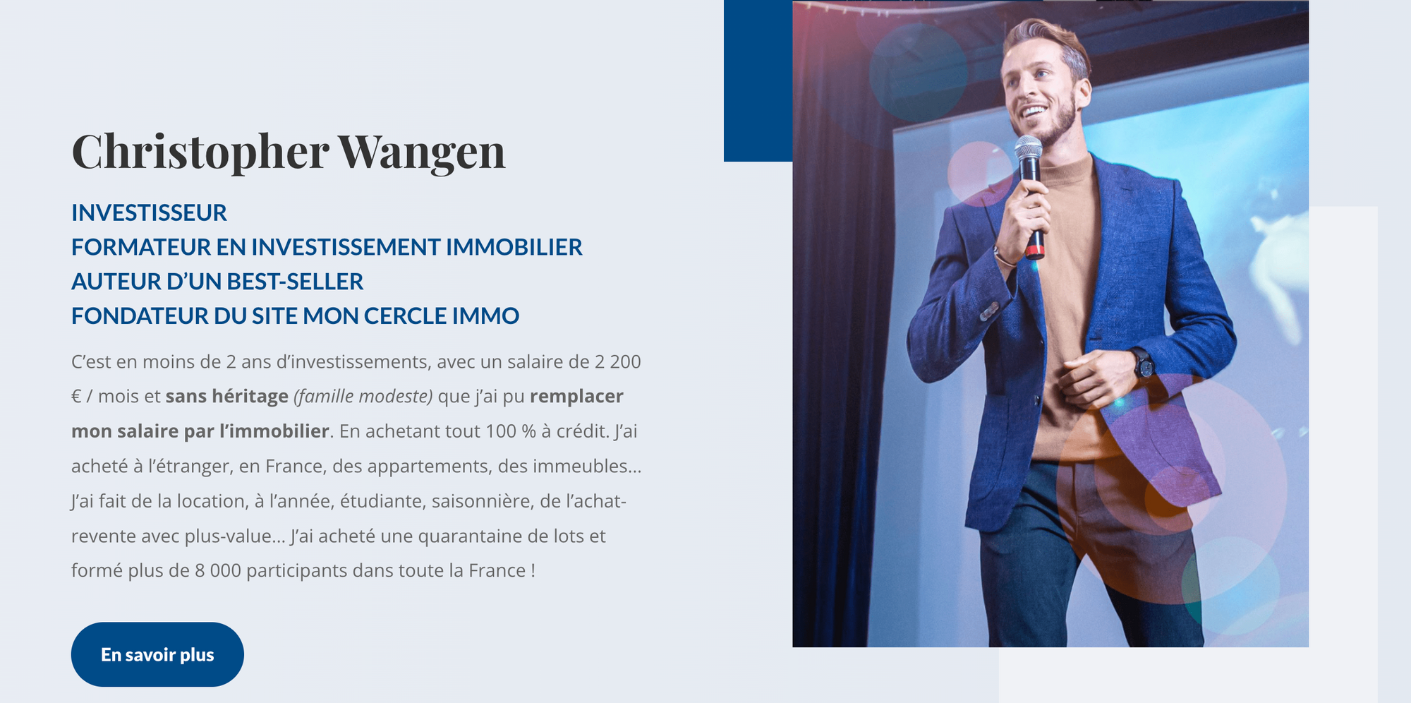 - un formateur reconnu comme Christopher Wangen qui dispose d'une énorme audience sur les résaux