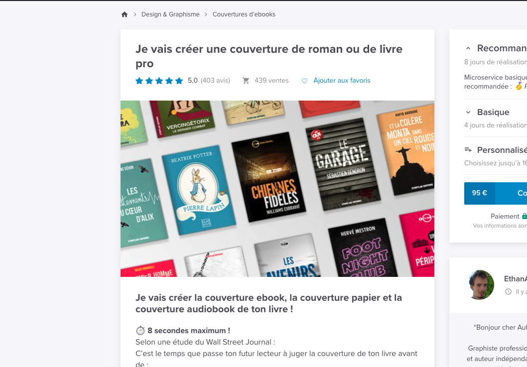 Sur des sites comme 5euros.com, Fiverr etc, vous pourrez dénicher aussi des designer pour faire votre couverture de livre.