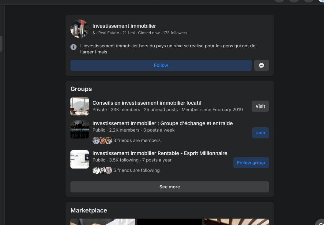 - Groupes Facebook, communautés Discord,... dédiées au sujet (exemple ici avec l'investissemnt immo) : allez poster et faire connaître votre projet sur ces groupes "vous voulez apprendre l'immobilier à votre enfant de 6 ans?"