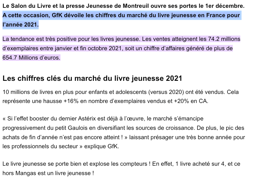 Le marché des livres pour enfant est un marché gigantesque encore en pleine évolution.
