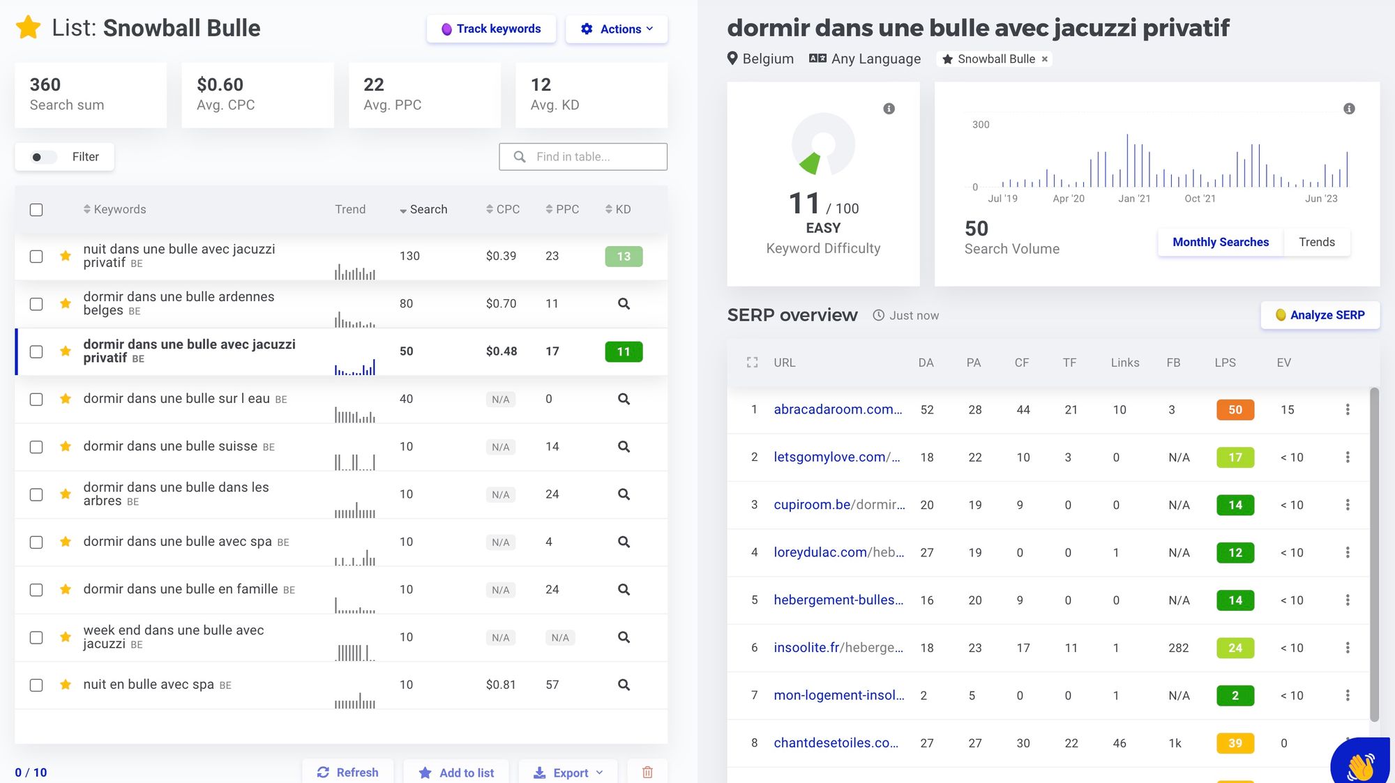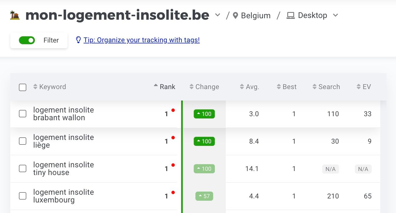 Je commence à creuser un peu le marché du logement insolite en Belgique avec mes outils de SEO (référencement naturel).
