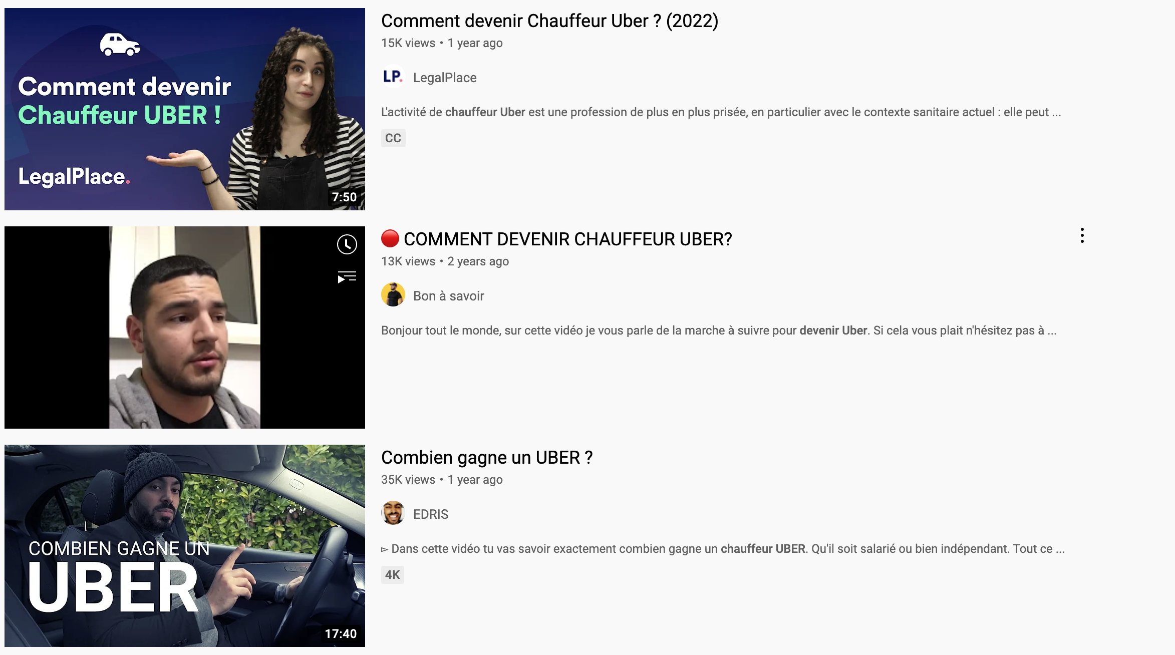 - CrĂ©er un site Internet avec du contenu ciblĂ© et optimisĂ© SEO, sur des requĂȘtes comme : "comment devenir chauffeur Uber" , "Combien gagne un chauffeur Uber" ou tout simplement "chauffeur Uber salaire".