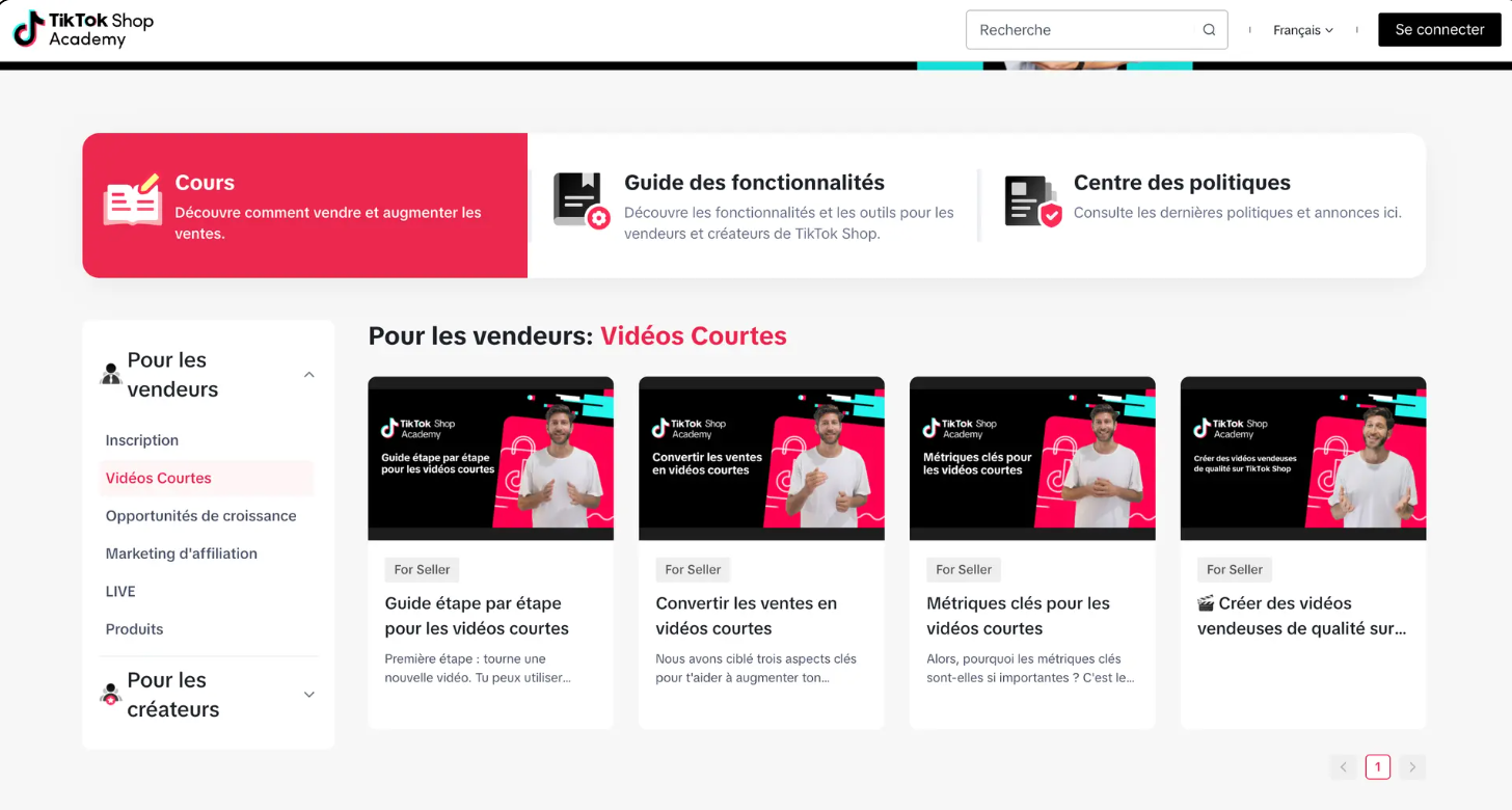TikTok a également créé une "Académie" pour vous aider à créer votre boutique et à apprendre les bases.