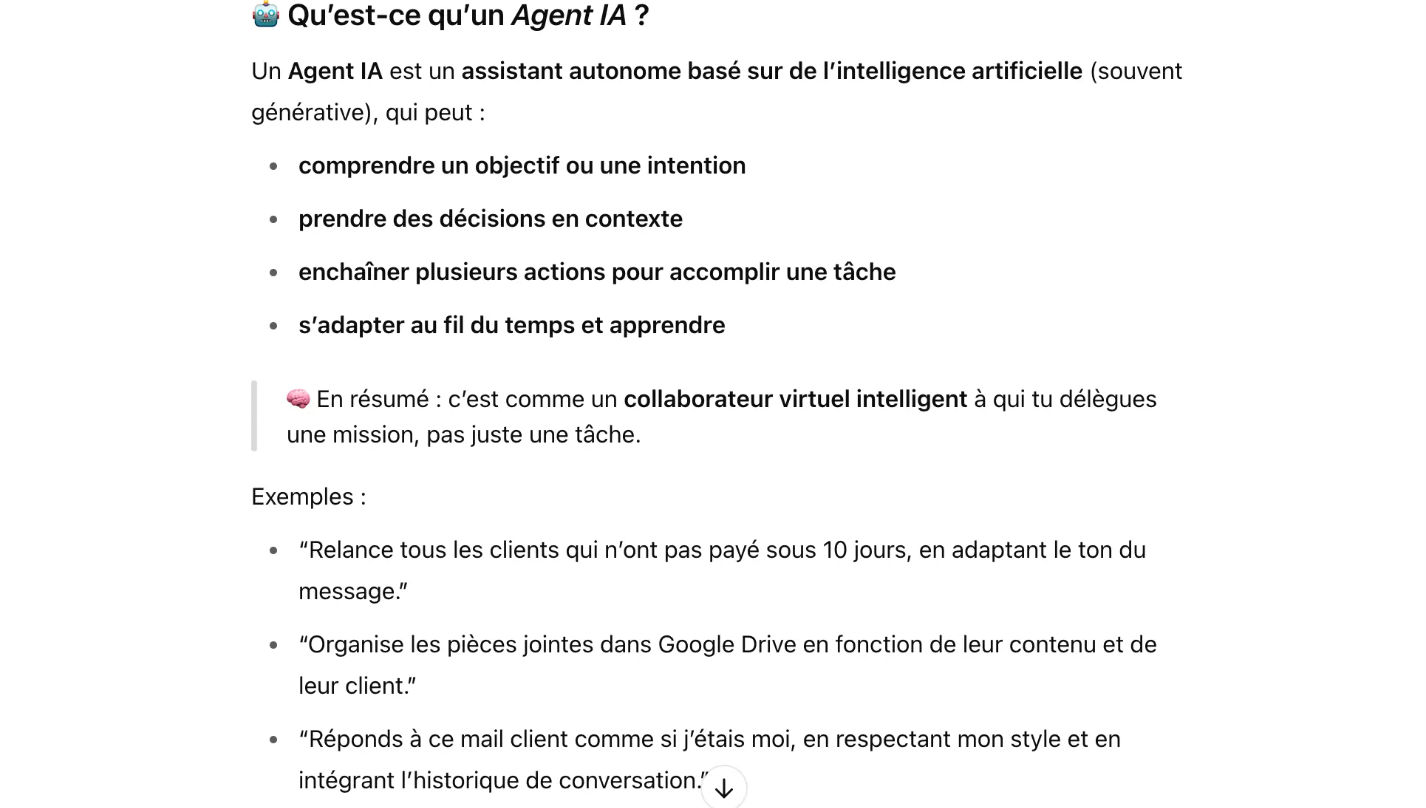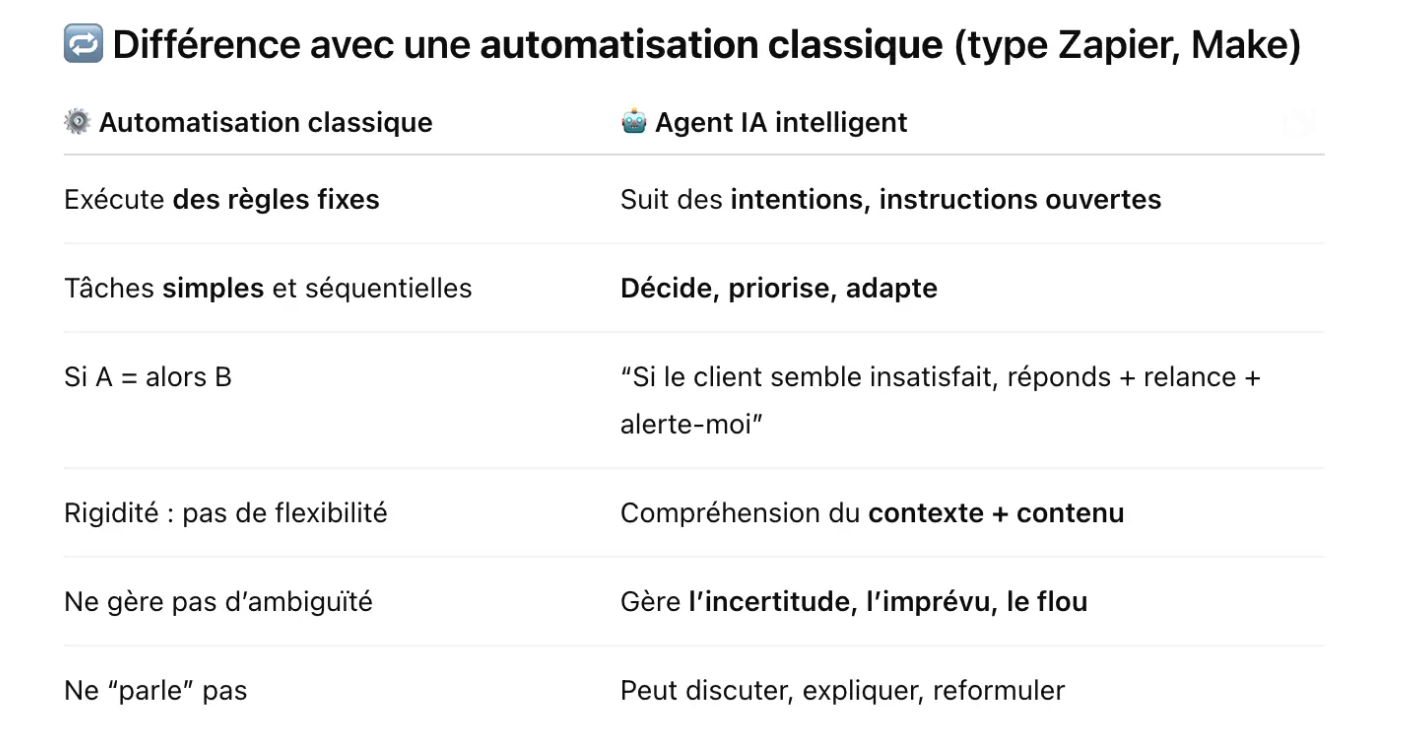 Il est aussi important de comprendre le nouveau "saut" que nous venons de faire en passant des automatisations aux "agents" qui permettent d'ajouter un niveau de complexité et une certaine forme d'humanisation dans les automatisations.